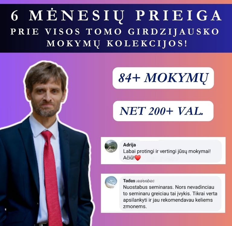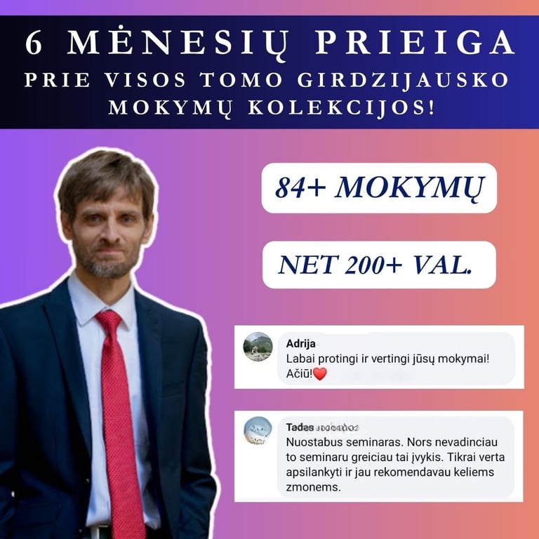Norėjau Jums labai padėkoti už seminarą “Turtas ir krizė”. Tikrai patiko Jūsų požiūris į tai, sugebėjimas įtikinti žmones, priversti juos permąstyti vertybes, o kitiems tiesiog suprasti, kad tai ką jie daro – daro gerai. Mane tai nepaprastai sustiprino, nes šių dienų žiniasklaidoje, visur kitur mažai rašoma apie pozityvą ir jau buvau beveik pradėjusi abejoti savo sveiku protu. Žavėjausi Jūsų erudicija, visapusiškumu ir nuoseklumu. Jūsų tikėjimas tuo ką darote ir energija persiduoda.